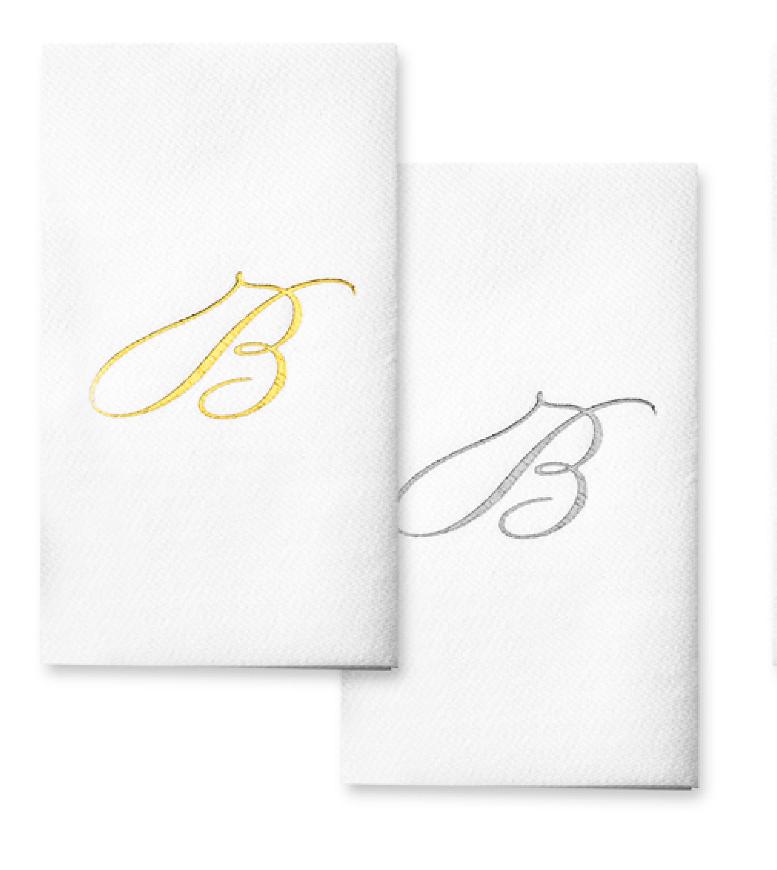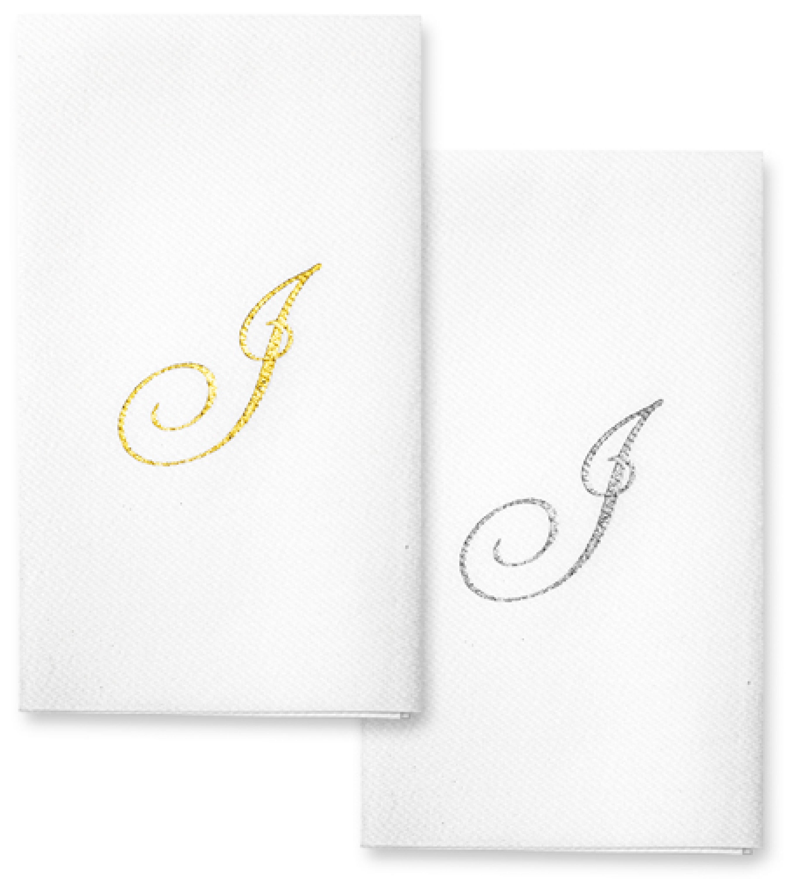 Each towel features a gleaming monogram in gold or silver foil, adding a refined finish that fits beautifully in weddings, holiday dinners, powder rooms, or corporate events. The included disposable tray makes for an elevated presentation straight out of the pack—no extra setup needed.