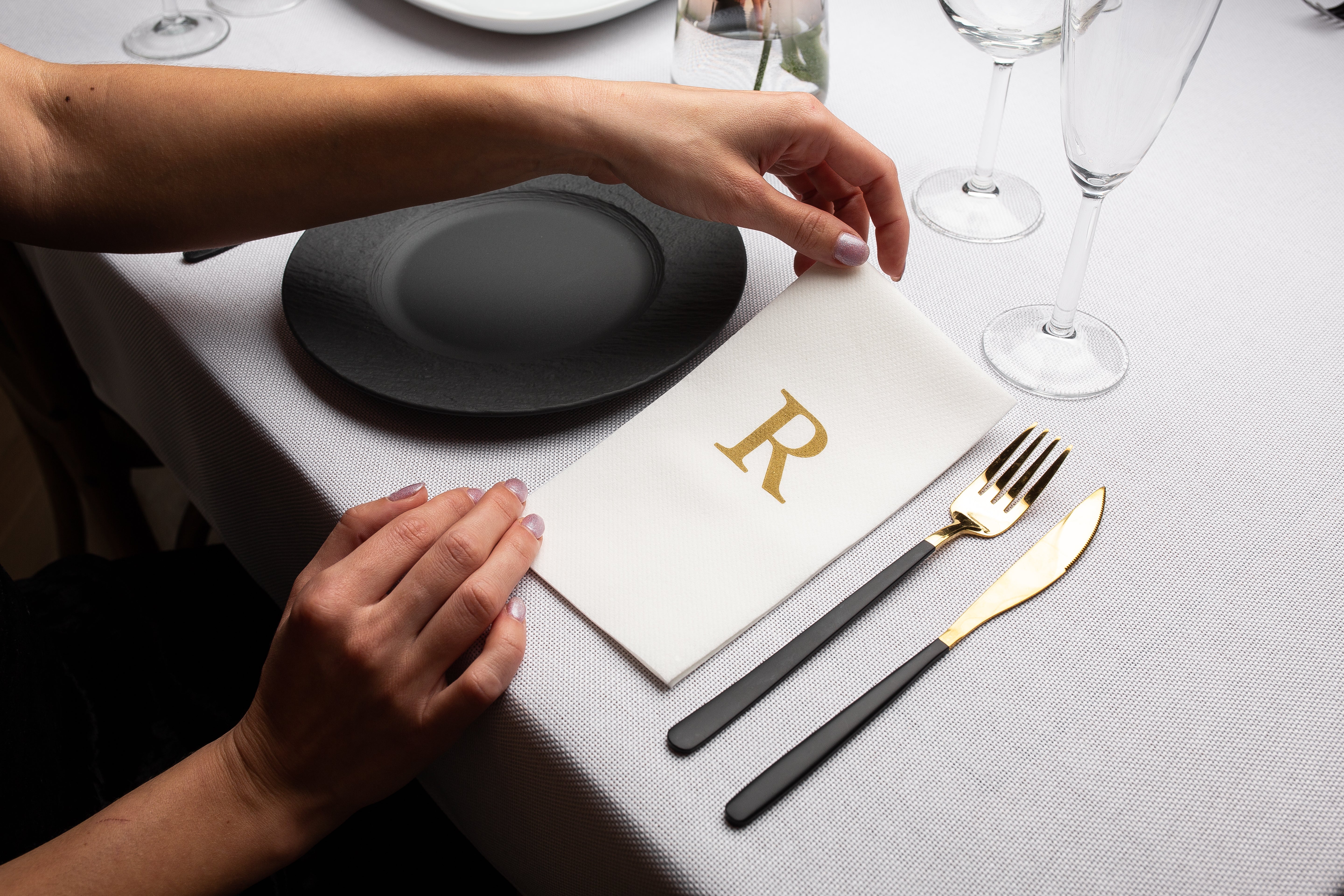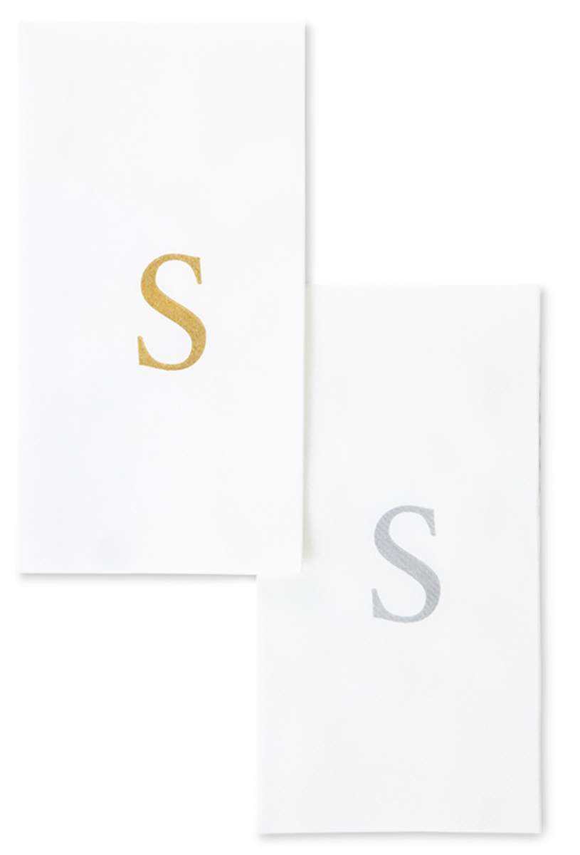 Singular’s monogram matte hand towels are the perfect combination of style, softness, and single-use convenience. Printed in elegant gold or silver foil, each towel features a classic monogram letter to match your name, family, or event. Choose from letters A, B, C, G, H, J, K, L, M, N, P, R, S, T, or W.